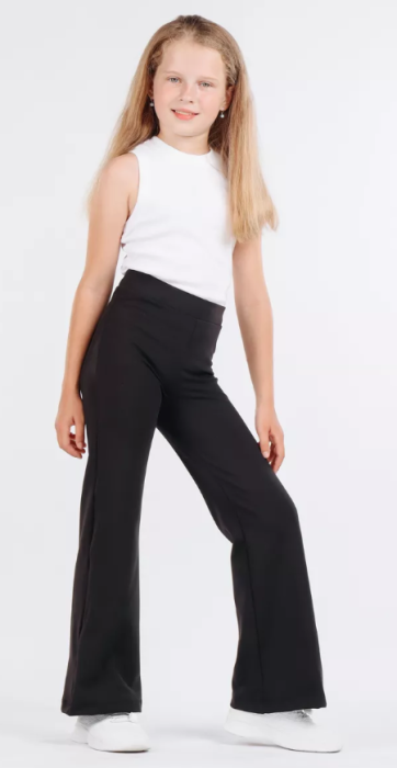 Брюки для девочки школьные клеш (р-р 30-40). Страна изготовитель - Россия. В упаковке 12 шт.