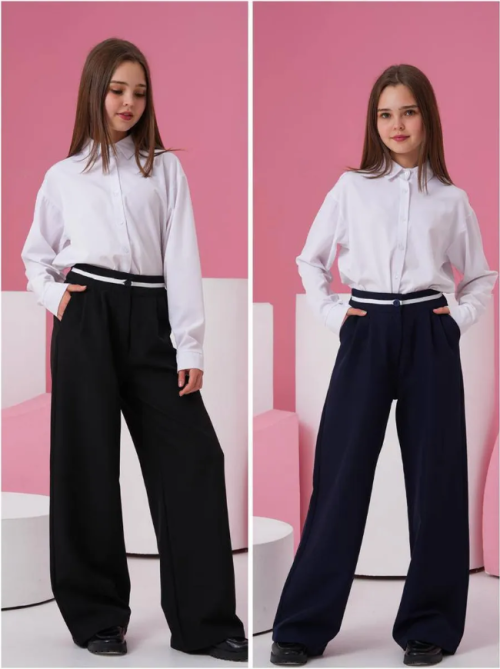 У каждой девочки в гардеробе должны быть красивые базовые брюки, которые сочетаются с любой одеждой. Брюки на резинке по талии идеально сядут на любую фигуру. Классические детские и подростковые штаны отлично подойдут как для школьный формы, так и для повседневной носки. Широкие брюки на подростка выполнены из костюмной ткани, хорошо пропускают воздух, отлично держат форму изделия, не мнется и не скатывается. Брюки для девочки с карманами имеют высокую посадку и подчеркивают достоинства фигуры маленьких модниц. Штаны трубы очень комфортные и не стесняют движений. Палаццо с завышенной талией будут стильно смотреться на 1 сентября и в качестве ежедневной школьной формы. Брюки подходят как для девочек начальных классов, так и для девушек подростков.