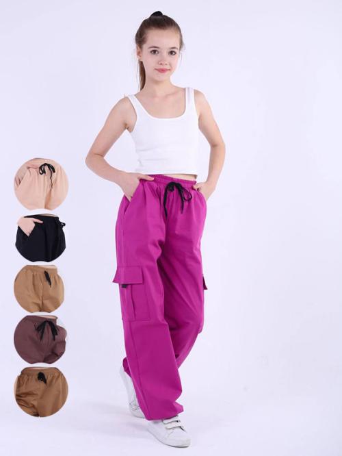 Брюки "Карго" для девочки. На резинке, с завязками. Однотонные, боковые карманы. Размерный ряд с 36 по 44. В упаковке 5 шт. Страна производства - Россия. Товар сертифицирован.