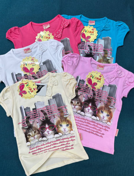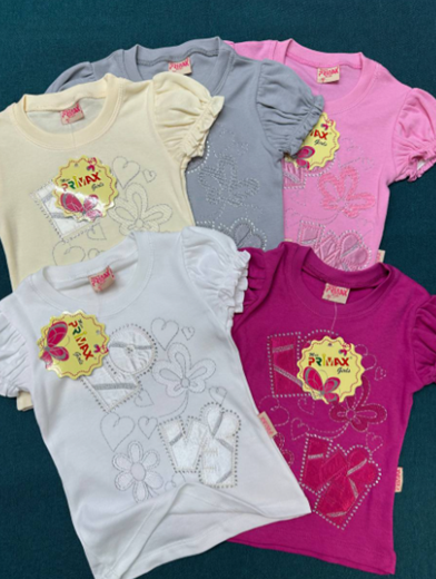 Детская футболка на девочку хлопковая с рукавами-фонариками (р-р 2-5). В упаковке 4 шт.Производство Россия,товар сертифицирован