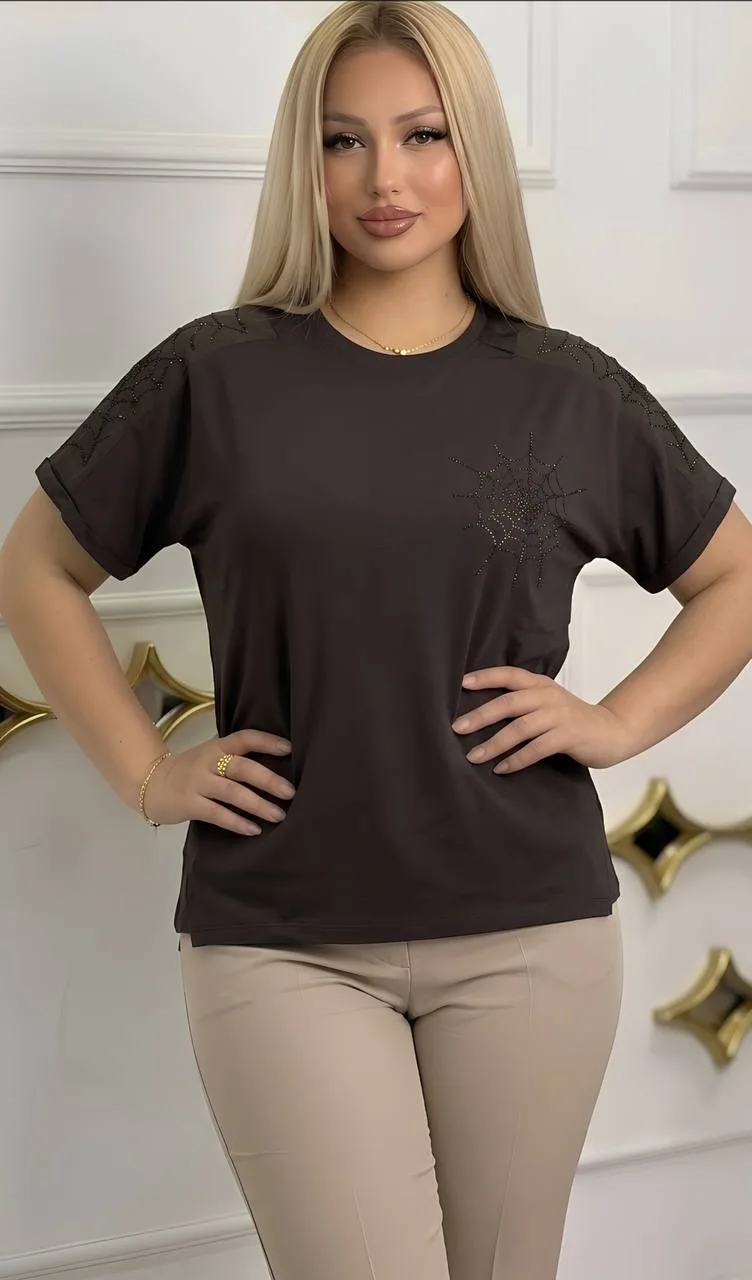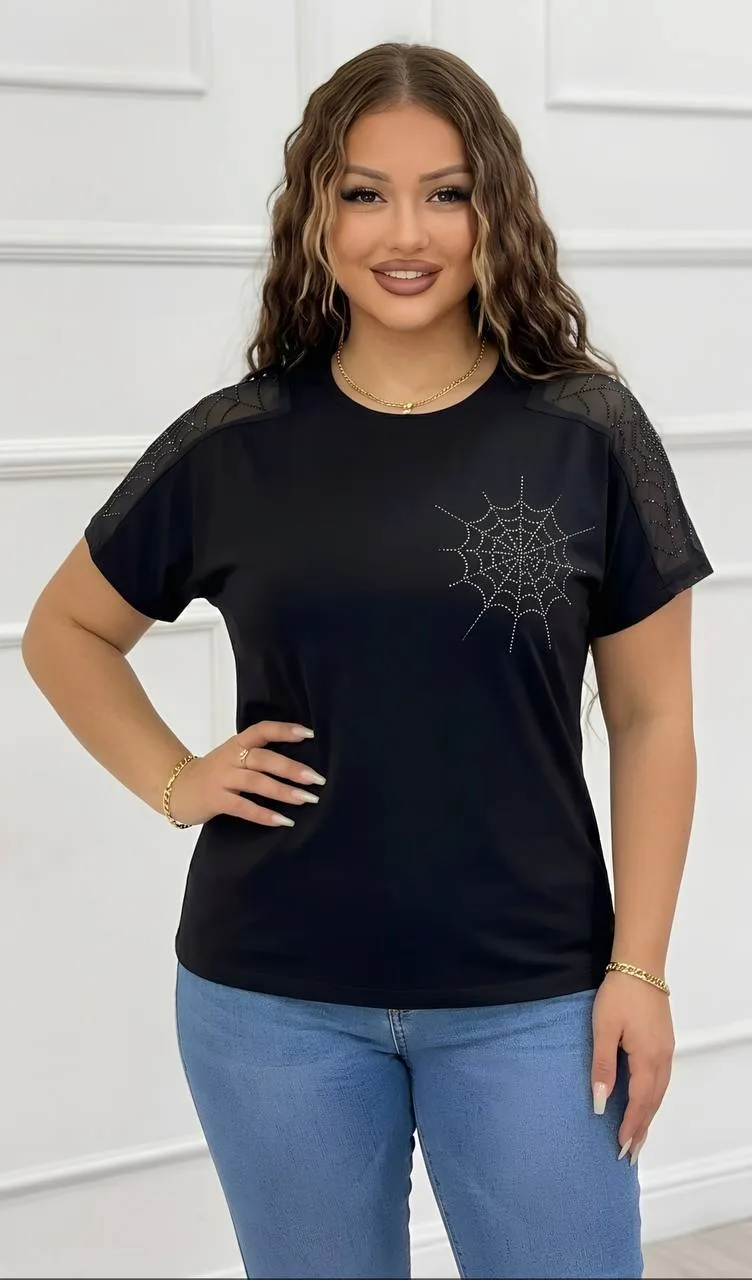 —Футболка трикотажная со стразами женская (р-р 52-58)