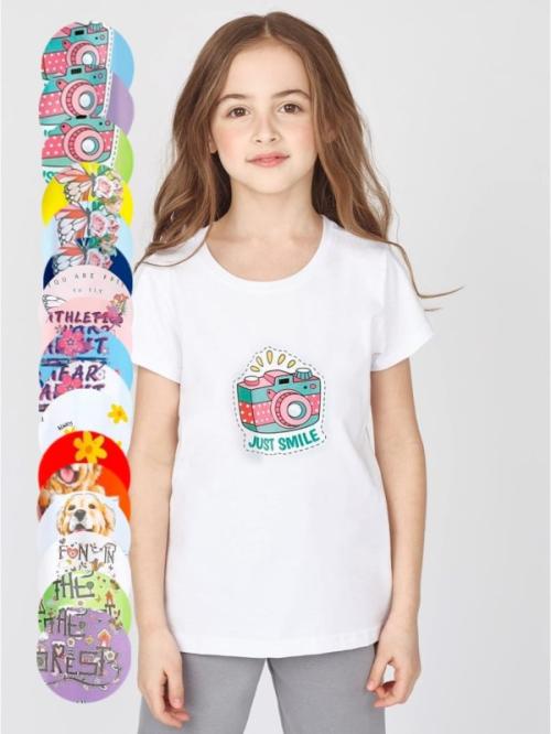 Футболка для девочек, принт. Короткий рукав (4-8 лет)