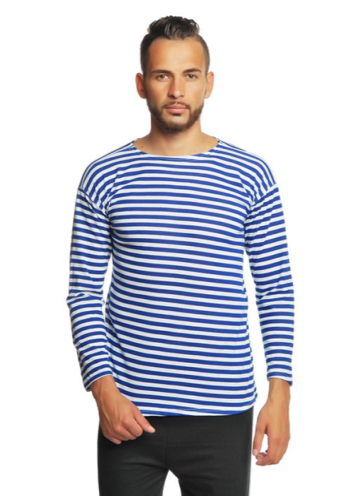 Футболка "Тельняшка", с длинным рукавом, мужская. Отличается высокой плотностью. Цвета полоски: синяя. Размерный ряд с 46 по 60. Каждая единица в индивидуальной упаковке. Страна производства - Узбекистан. Товар сертифицирован.