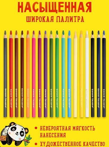 Карандаши цветные набор 24 цвета Каляка-Маляка имеют утолщенный ударостойкий грифель 3 мм повышенной мягкости и яркости. Детские мягкие цветные карандаши для рисования приятно наносятся на бумагу - однородно и равномерно, ярко и насыщенно. Разноцветные карандаши для детей изготовлены из древесины - липы высокого качества, они абсолютно безопасны. Яркие цветные карандаши с мягким грифелем при заточке не крошатся и не ломаются. Карандаши подходят для юных художников - без усилий легко ложатся на бумагу, оставляя яркий цвет, устойчивый к выцветанию. Шестигранные деревянные карандаши не скатываются со стола. Цветные карандаши для малышей и детского творчества приятно держать в руках - они покрыты лаком, защищающим корпус от высыхания. Художественные цветные карандаши для малышей позволят ребенку проявить свои способности и полюбить рисование!