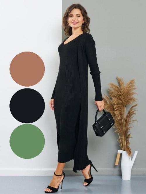 Костюм женский "Лапша", двойка: платье и кардиган. Качественная ткань и пошив. Размерный ряд: 42-48. Длина платья: 127см, длина кардигана: 134 см. В упаковке 4 шт. Страна производства - Россия. Товар сертифицирован.