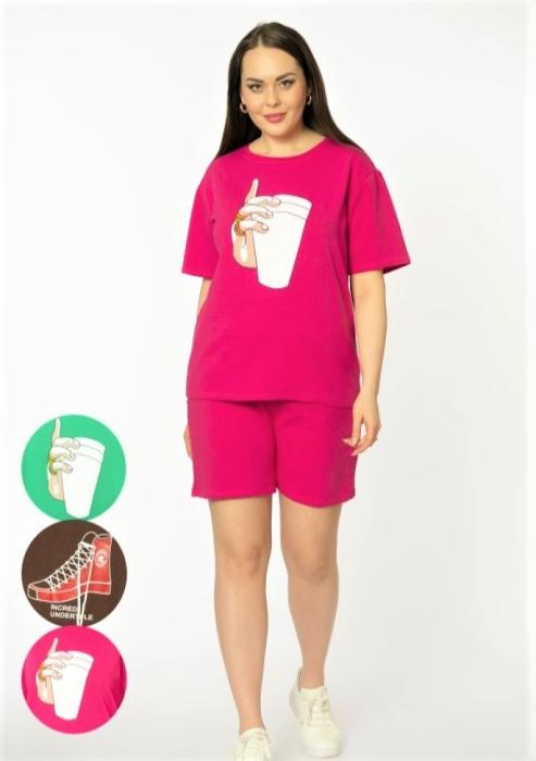—Костюм женский, с принтом: футболка и шорты (с карманами, на резинке), (р-р 46-54)