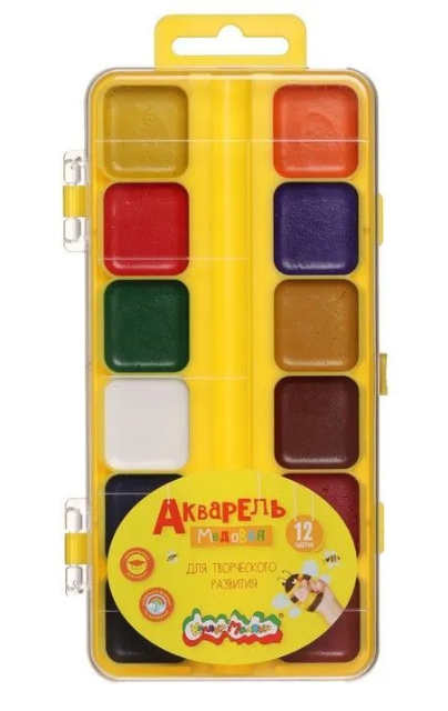 Акварельные краски Каляка-маляка – это профессиональное качество, адаптированное для малышей. Детская акварель Каляка-Маляка изготовлена только на основе натуральных компонентов, что обеспечивает безопасность красок, используемых малышом. Чистота тона и превосходная разносимость – еще одно конкурентное преимущество акварели Каляка-Маляка. Благодаря улучшенному составу красок, они отличаются прозрачностью, чистотой и яркостью цвета. Краски хорошо берутся на кисть, равномерно и легко наносятся на бумагу. Идеально подходит в качестве первого материала для рисования, развивает воображение и способствует изучению цвета. Изготовлена на основе натуральных компонентов с добавлением меда, поэтому абсолютно безопасна в использовании. Акварель в удобной пластиковой упаковке с европодвесом.Акварельные краски Каляка-маляка – это профессиональное качество, адаптированное для малышей. Детская акварель Каляка-Маляка изготовлена только на основе натуральных компонентов, что обеспечивает безопасность красок, используемых малышом. Чистота тона и превосходная разносимость – еще одно конкурентное преимущество акварели Каляка-Маляка. Благодаря улучшенному составу красок, они отличаются прозрачностью, чистотой и яркостью цвета. Краски хорошо берутся на кисть, равномерно и легко наносятся на бумагу. Идеально подходит в качестве первого материала для рисования, развивает воображение и способствует изучению цвета. Изготовлена на основе натуральных компонентов с добавлением меда, поэтому абсолютно безопасна в использовании. Акварель в удобной пластиковой упаковке с европодвесом. Соответствует требованиям безопасности продукции. Возраст: от 3-х лет.