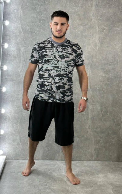 Мужская пижама с шортами и футболкой хлопок (р-р 48-56). В упаковке 5шт, одного цвета. Производство Узбекистан, товар сертифицирован
