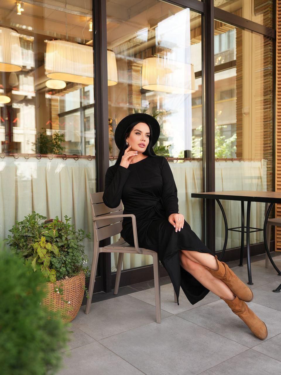 Платье выполнено из мягкого трикотажа, что обеспечивает комфорт даже в теплую погоду. Модель с длинным рукавом идеально подойдет для офисного стиля или делового мероприятия, а также будет уместна на торжестве или выпускном вечере. Такой вариант одежды легко впишется как в повседневную жизнь, так и станет ярким акцентом праздничного гардероба.