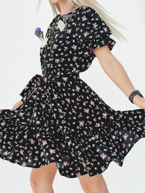 Нежное женское шифоновое платье. Длина - мини. Короткий рукав, с поясом и оборкой. В упаковке 4 шт: 42 и 44 (по 2 штуки на размер). Страна производства - Россия. Товар сертифицирован.