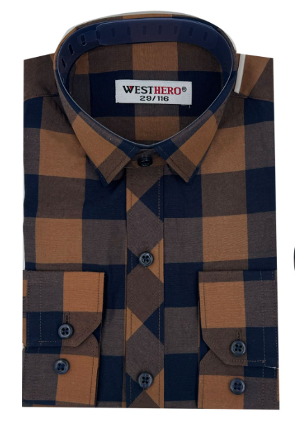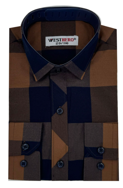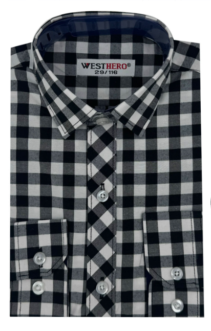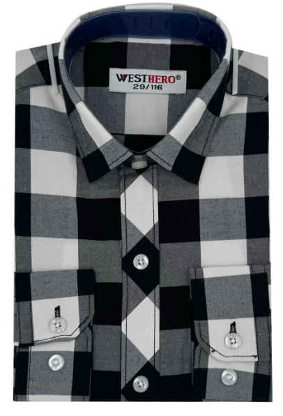 Рубашка детская длинный рукав в клетку, хлопок (р-р 29-36)