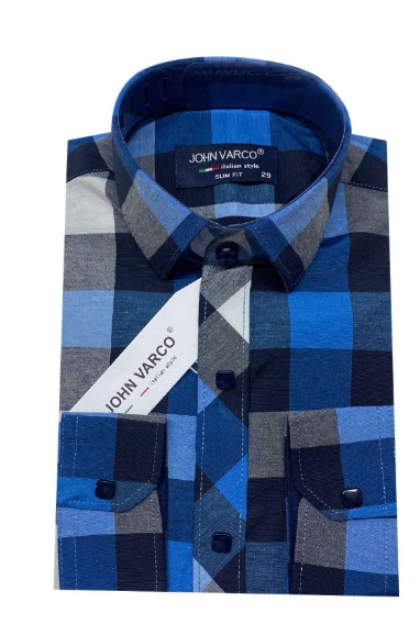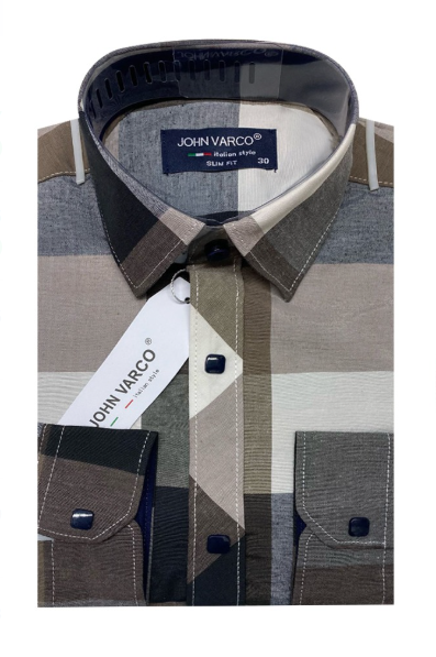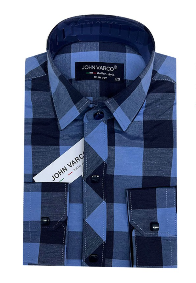 —Рубашка детская с длинным рукавом на кнопках в клетку , хлопок стрейч (р-р 29-36)