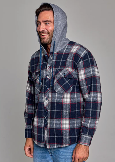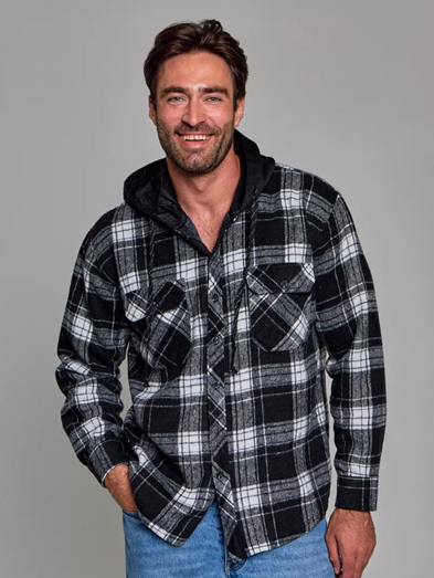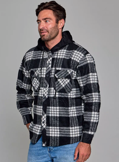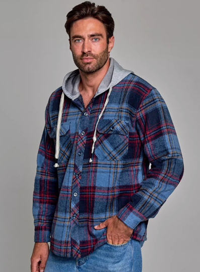 —Рубашка мужская оверсайз утепленная в клетку с капюшоном (р-р 48-58)