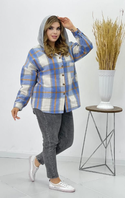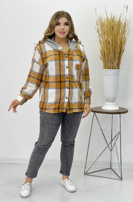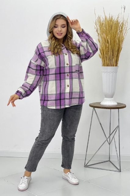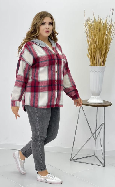 Стильная теплая женская клетчатая рубашка в стиле оверсайз большого размера из мягкого материала - идеальный вариант для полных женщин и будущих мам! Модель привлекает оригинальным дизайном. Застегивается спереди на пуговки под планку. Имеет классический круглый вырез, дополненный капюшоном с завязками. Однотонный капюшон с тонким флисовым утеплителем. Рукава полной длины с манжетами, которые застегиваются пуговицей. Накладной карман на груди декорирован модными надписями, что освежает образ. Модный принт в клетку добавляет модели динамичности. Вытачки на груди способствуют оптимальной посадке по фигуре плюс сайз. вободный силуэт и умеренный оверсайз не сковывает движений, маскируя мелкие недостатки фигуры. Мягкий, приятный телу материал подарит комфорт и тепло на весь день. Утепленная рубашка легко заменит ветровку легкую куртку плащ или кардиган в прохладную погоду. Отлично комбинируется с водолазками свитшотами джинсами брюками и легинсами.