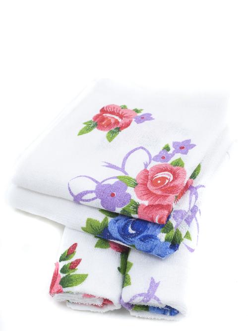 Салфетка махровая белая (цветы)  30*34см
