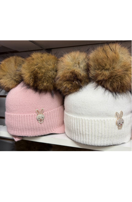 —Шапка зимняя для девочки с помпонами р-р 48-52