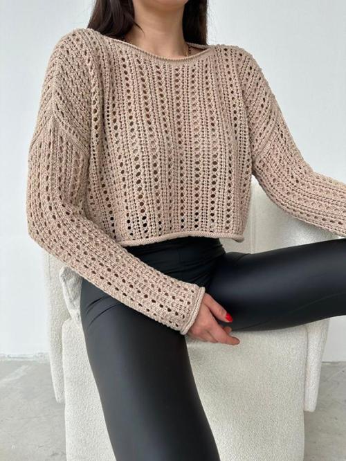 —Свитер вязаный женский. Укороченный, "Сетка". Размер единый (42-46). Арт: 975096