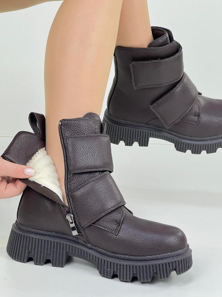 Ботинки коричневые зимние на липучке - это превосходный вариант для активных девушек и женщин, которые ценят комфорт и стиль в одной обуви. Они не только идеально подходят для зимы, но и осени и даже весны благодаря своей универсальности и функциональности.Очаровательные и практичные, эти зимние молодежные полусапожки обязательно станут незаменимым аксессуаром в гардеробе каждой модной женщины. Отлично сочетаясь с различными стилями одежды, они подойдут как для повседневных прогулок, так и для вечерних выходов в город с друзьями. Их массивный, но элегантный дизайн придаст пикантности и шарма вашему образу.Полуботинки зимние на липучке на платформе максимально удобны для ходьбы, особенно в повседневных ситуациях, давая комфорт для вашей ноги в течение всего дня.