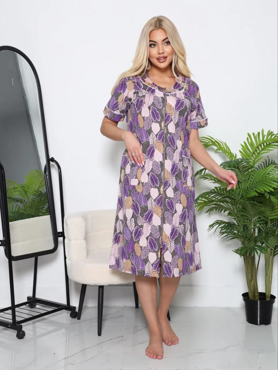 Женский домашний халат для дома на молнии р-р 50-60
