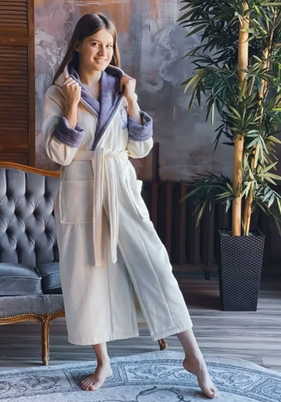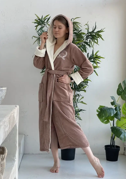 Махровый халат женский. Удобная комфортная одежда для дома. Банный халат из махры отлично впитывает воду после водных процедур душа, ванны или сауны, заменяя полотенце,не линяет, отлично переносит многочисленные стирки. Структура махровой ткани создает легкий массажный эффект.Теплый, мягкий, уютный, запашной халат с капюшоном, с накладными карманами, регулируемыми манжетами на рукавах - то, что создаст комфорт для отдыха в дождливый осенний день и морозный зимний вечер. Чтобы халатик сидел безупречно - выбирайте свой размер. Будьте всегда красивы и элегантны!