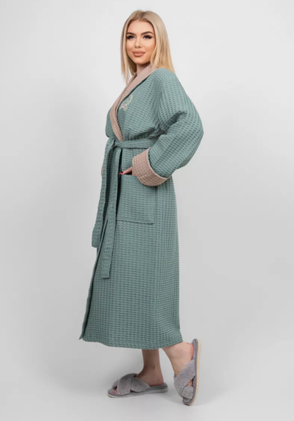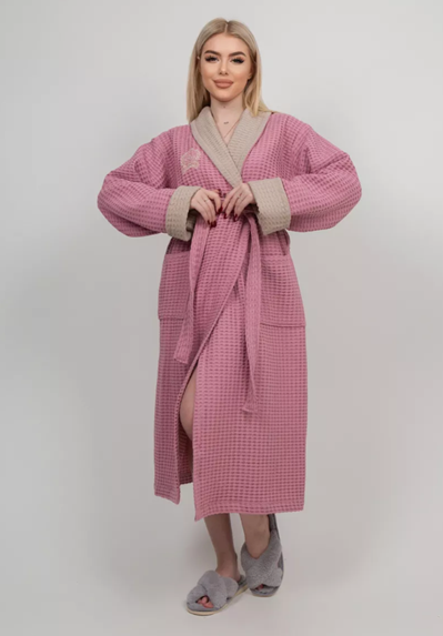 —Женский халат вафельный с поясом (р-р L-7XL)