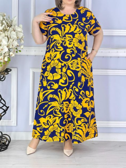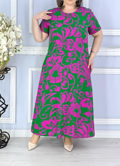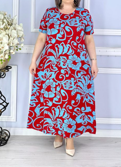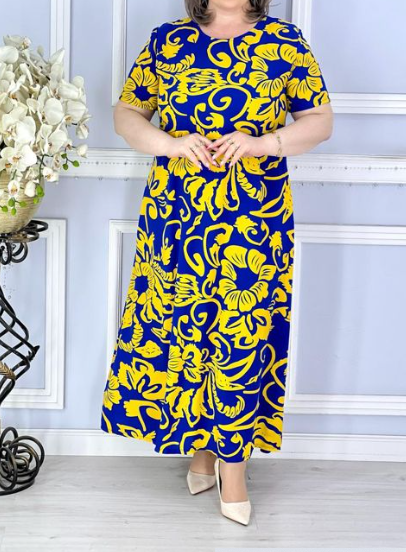 Платье имеет свободный крой и длину до щиколотки, что делает его отличным выбором для повседневной носки или домашнего отдыха. Удобная конструкция позволяет легко надевать платье, а сзади оно завязывается на симпатичный бантик, добавляя нотку романтики в образ.