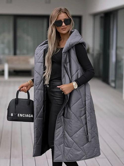 —Жилетка стеганая, без рукавов, длина макси с поясом (р-р 46-56)