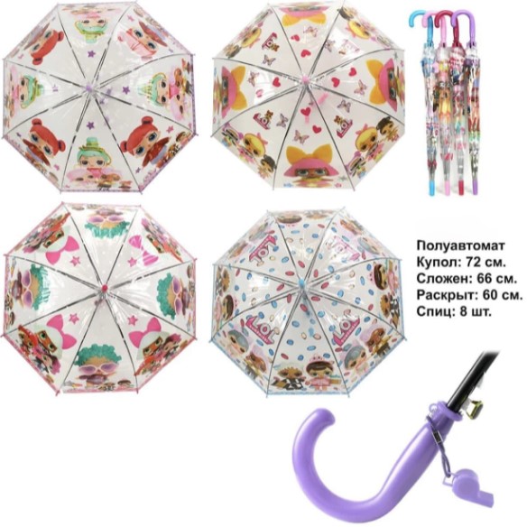 . Глубокий купол с лёгкостью защитит голову и плечи. Оригинальное дополнение в виде свистка скрасит впечатление от использования, поэтому полуавтоматический зонт детский станет любимым аксессуаром и точно не забудется дома.
