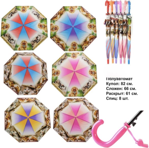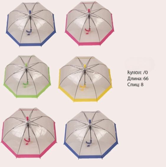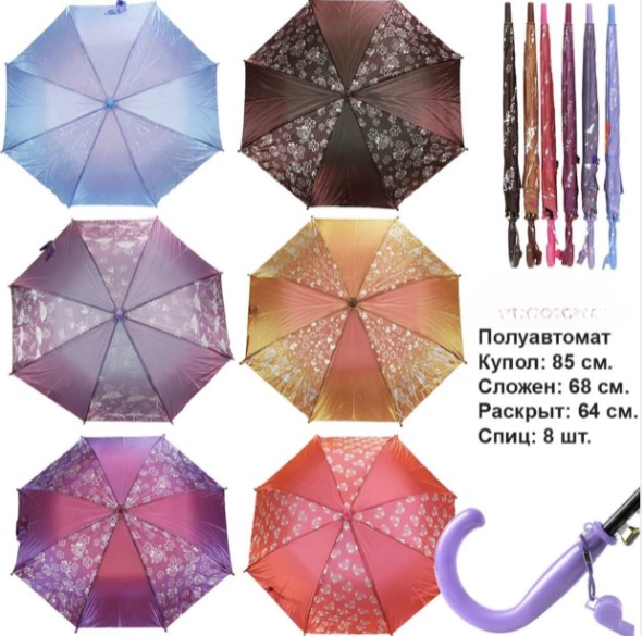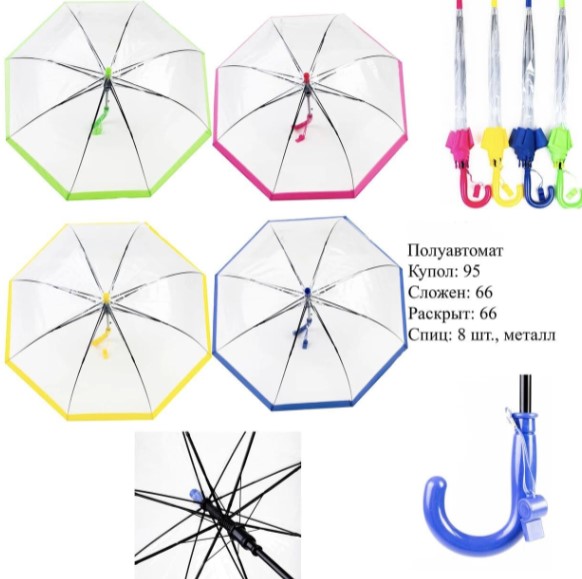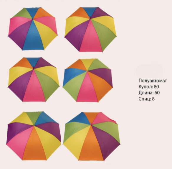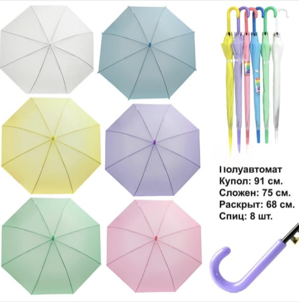 Зонт полуавтомат , однотонные цветные ( 8 спиц) в упаковке 12 шт товар сертифицирован производство Россия